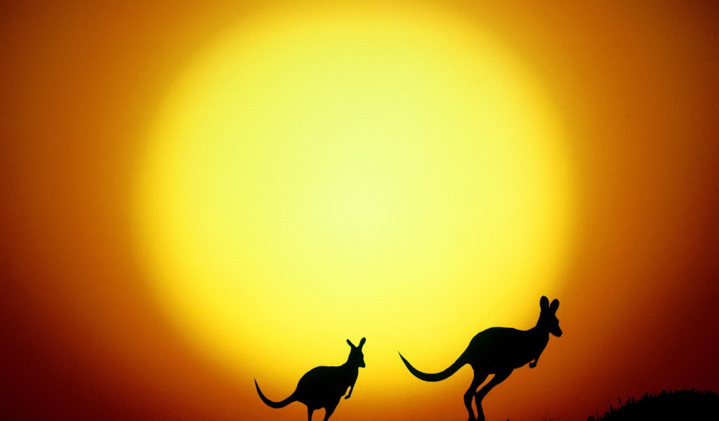 Kangaroos against the sun Desktop wallpapers 1024x600