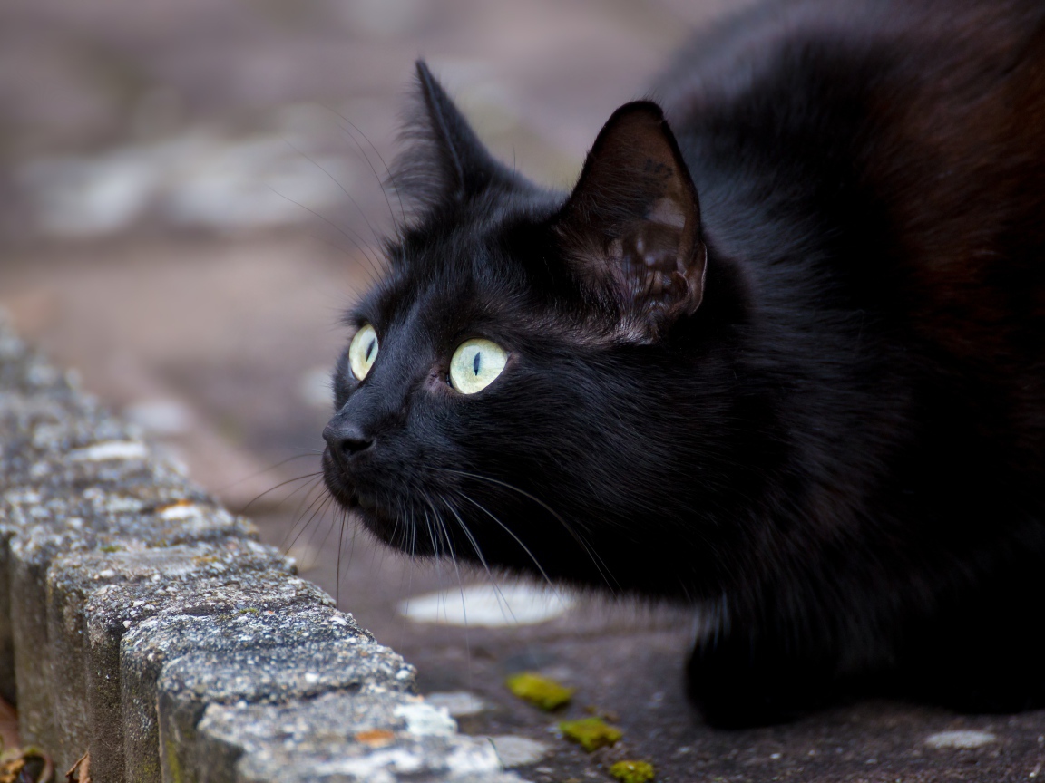 Black green-eyed cat with a surprised look Desktop wallpapers 1152x864