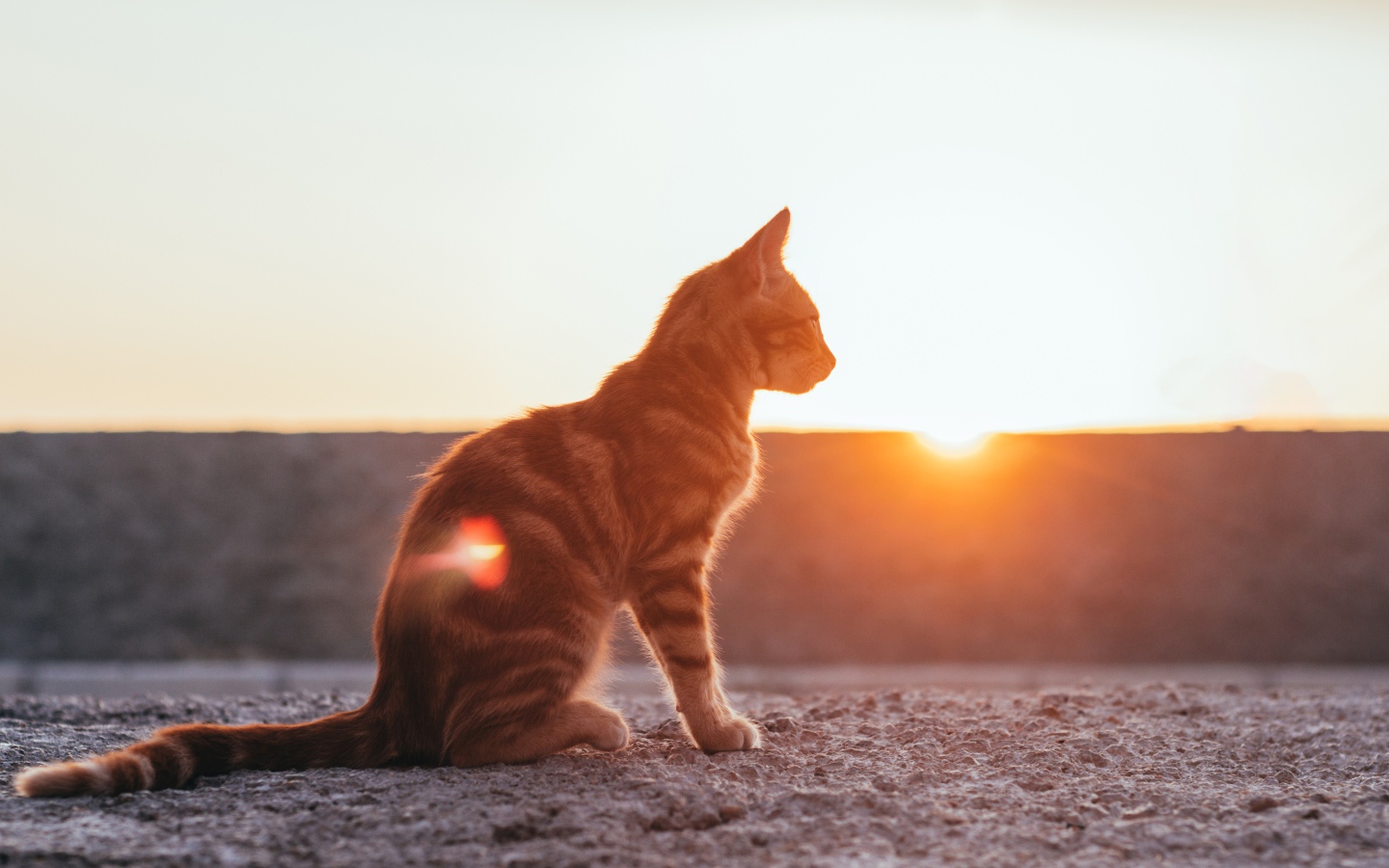 Tabby gray cat in the sun Desktop wallpapers 1440x900
