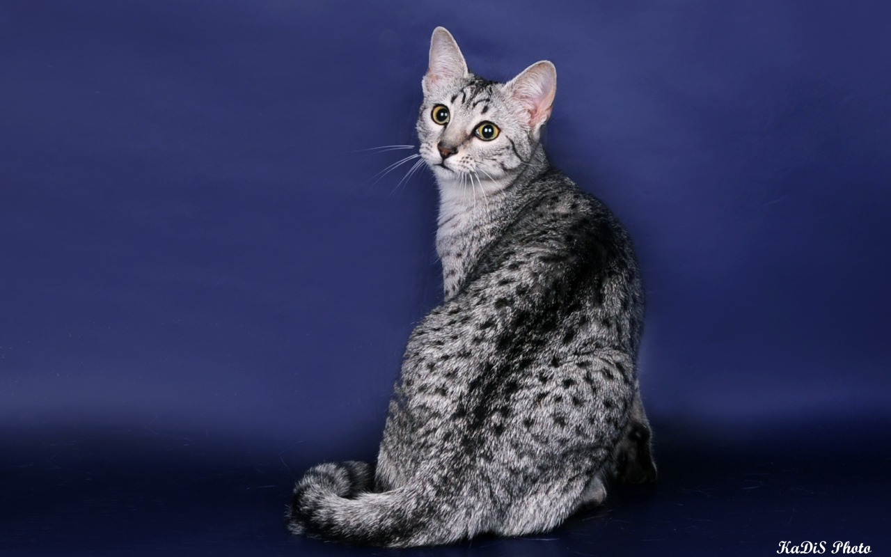 Egyptian Mau on a blue background Desktop wallpapers 1280x800