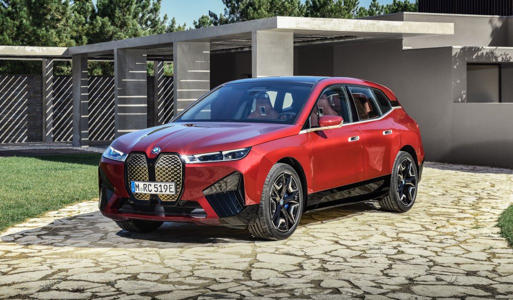 Red crossover BMW IX Sport 2021 at home Desktop wallpapers 1024x600