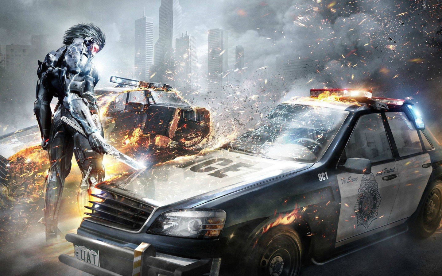 The villain has destroyed police car - 2560x1440