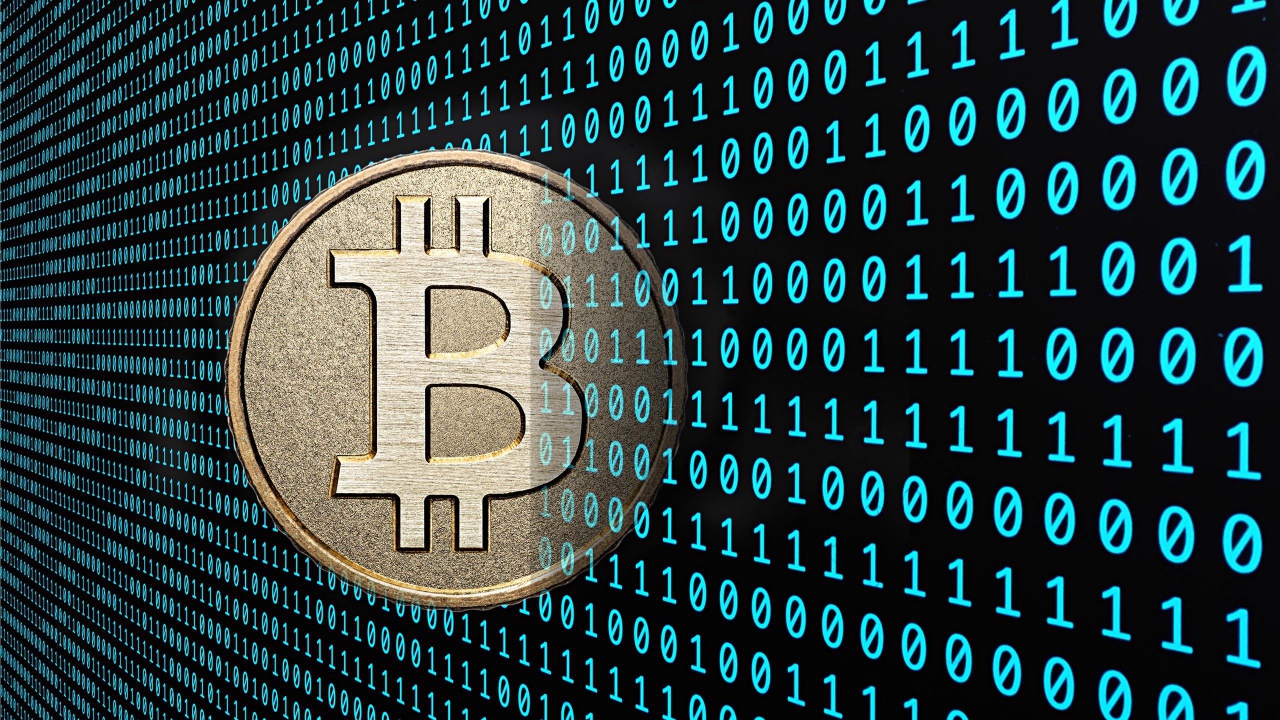 Bitcoin coin on the background of a numeric code - 2560x1536