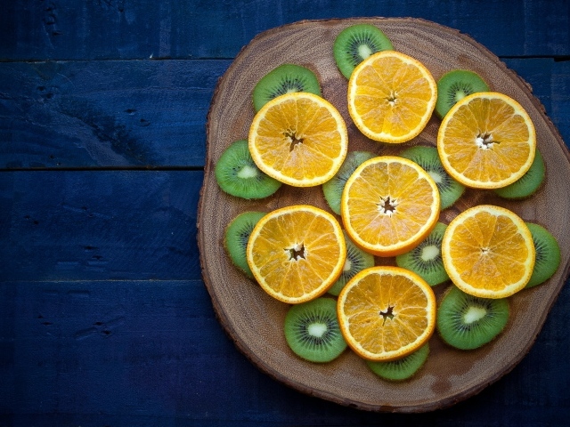 Kiwi slices with oranges on a chalkboard Desktop wallpapers 640x480