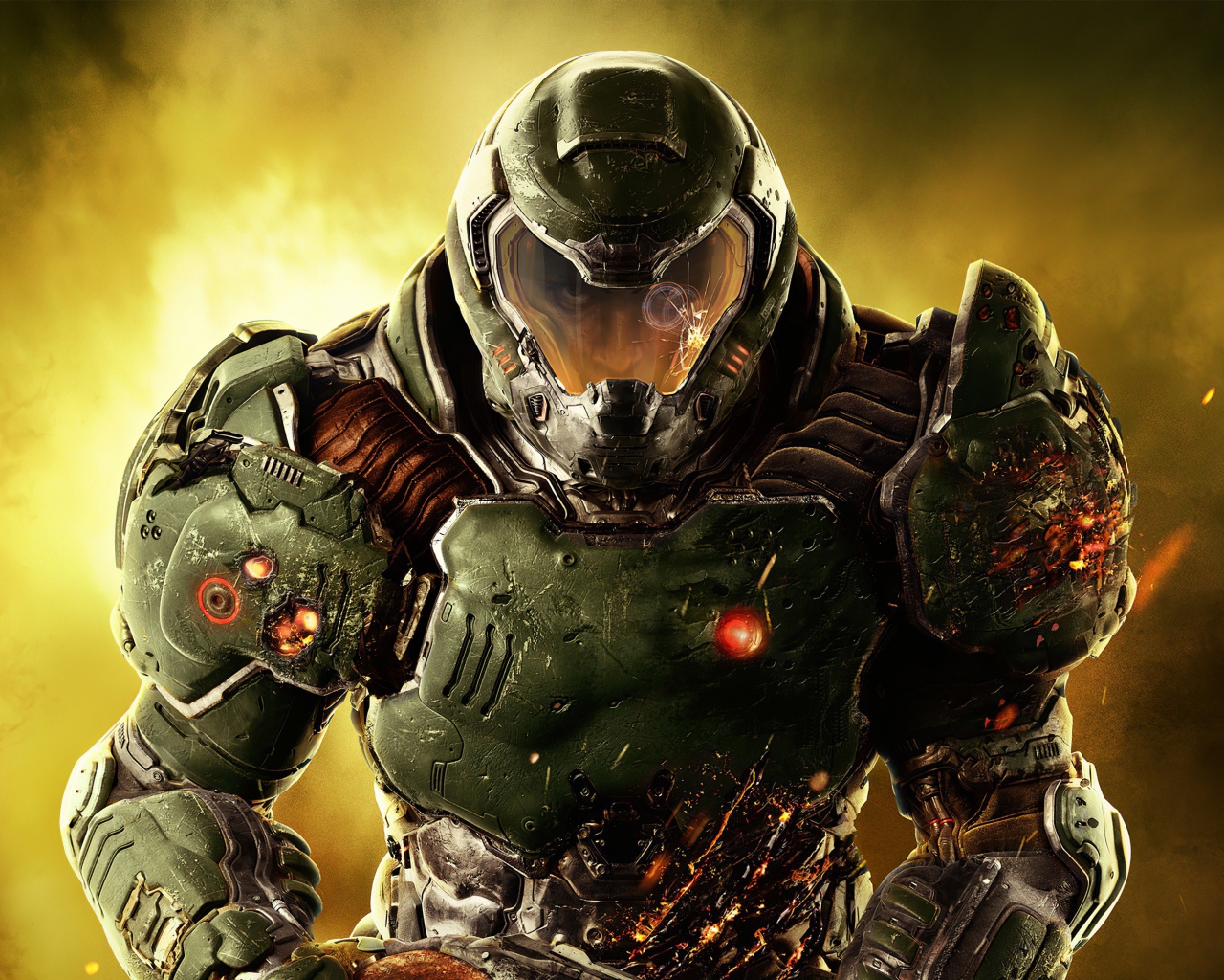 Warrior in armor character computer game Doom Eternal, 2020 Desktop wallpapers 1280x1024