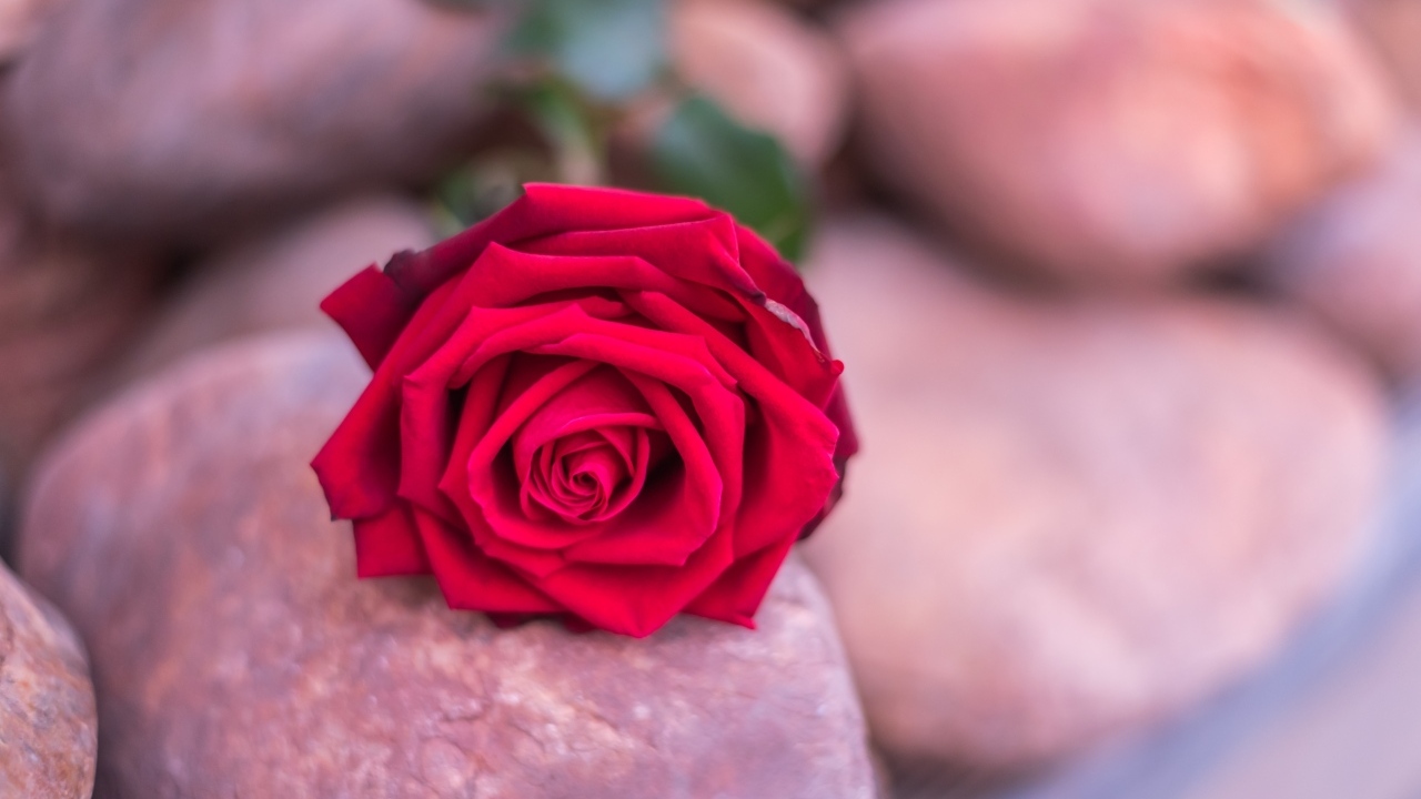 Scarlet rose lies on a stone Desktop wallpapers 1280x720