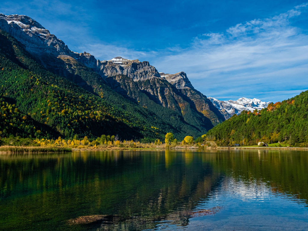 Cold water in a clear lake by the mountain under a blue sky Desktop wallpapers 1024x768