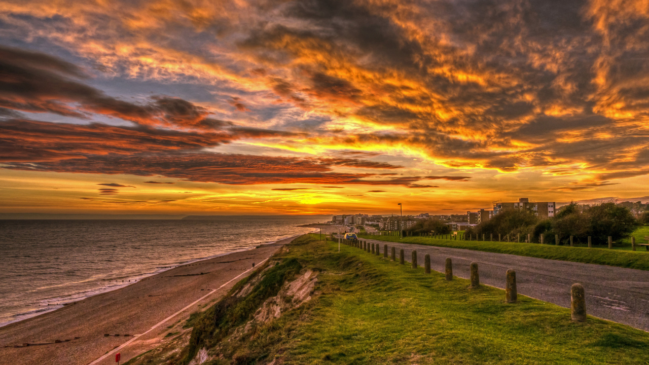 Quay at sunset under the beautiful sky Desktop wallpapers 1280x720