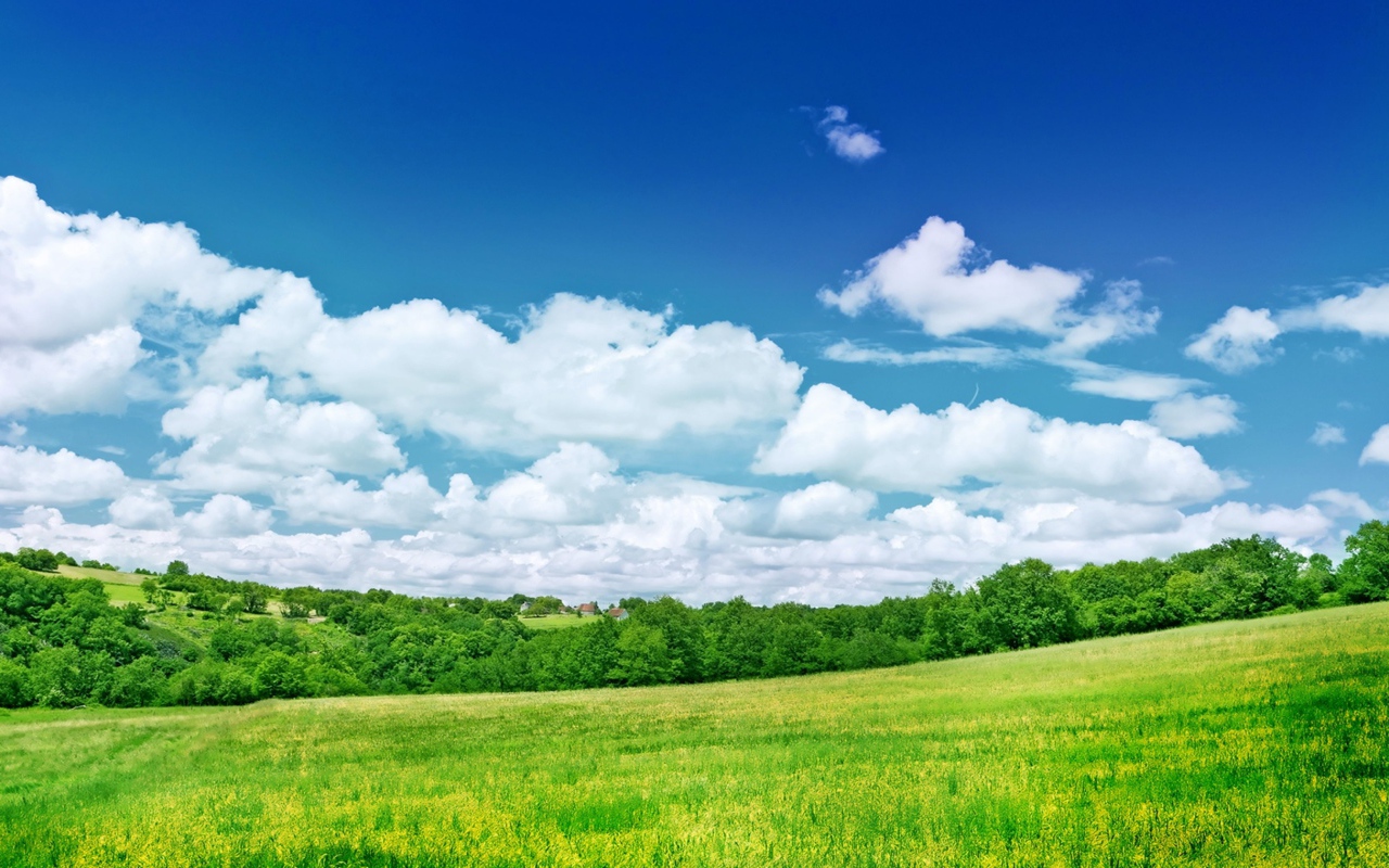 Blue sky with white clouds over green field Desktop wallpapers 1280x800