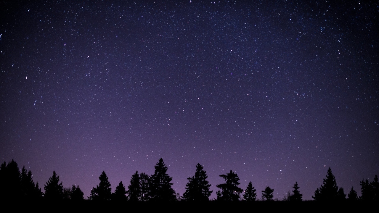 Starry sky at night over the forest Desktop wallpapers 1280x720