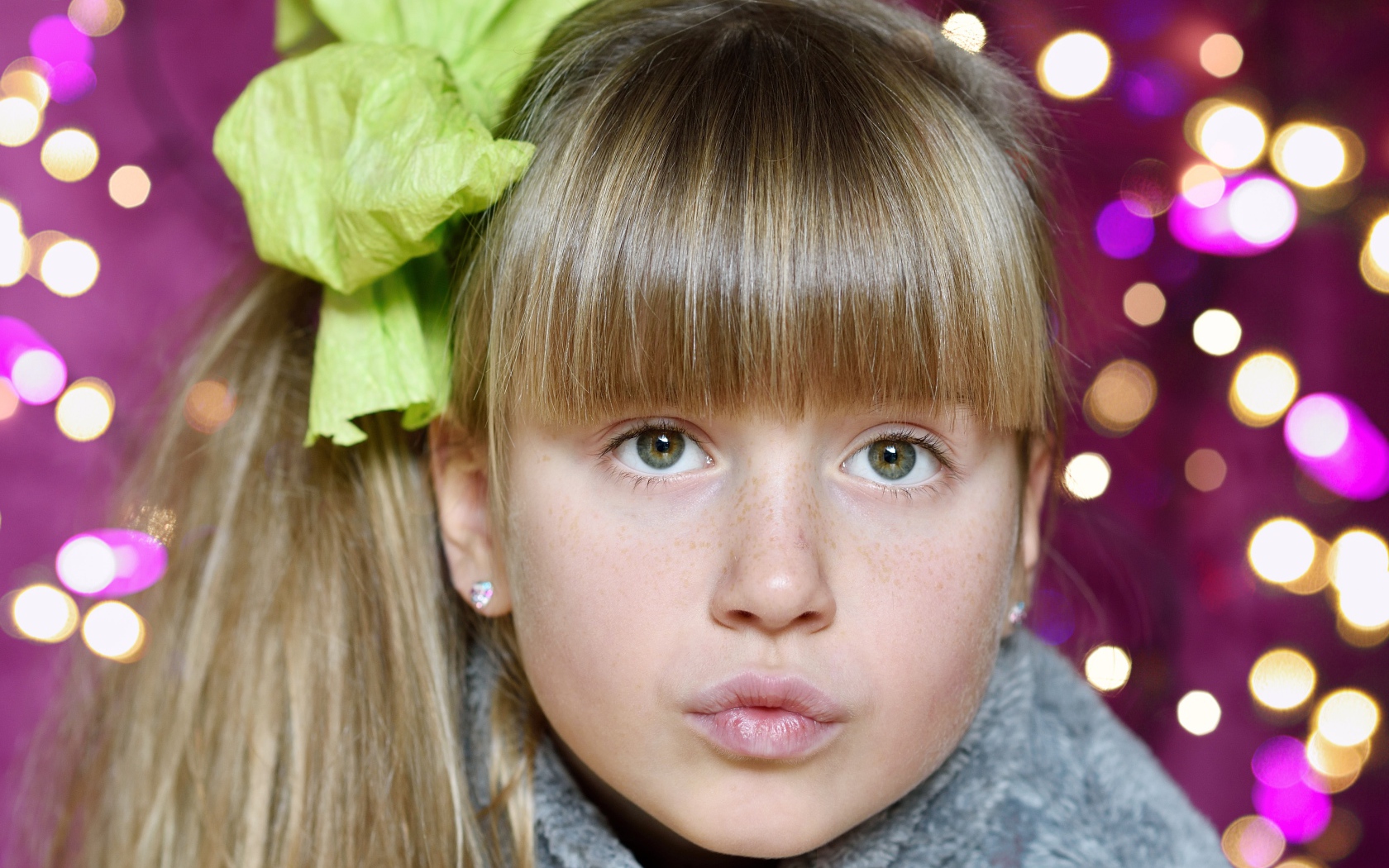 The face of a green-eyed girl with a bow on her head - 4395x3398