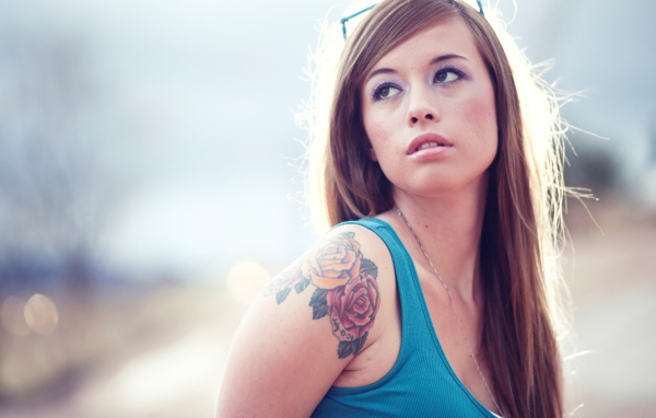Girl with tattoo roses Desktop wallpapers 600x382