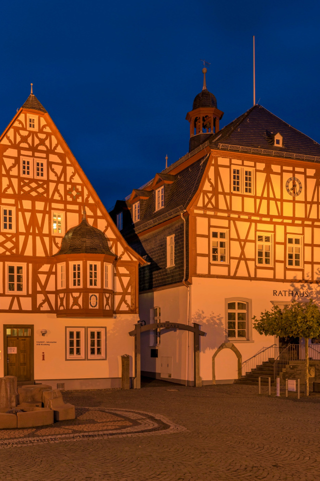 Houses on a night street in Kirchberg, Germany Desktop wallpapers 640x960