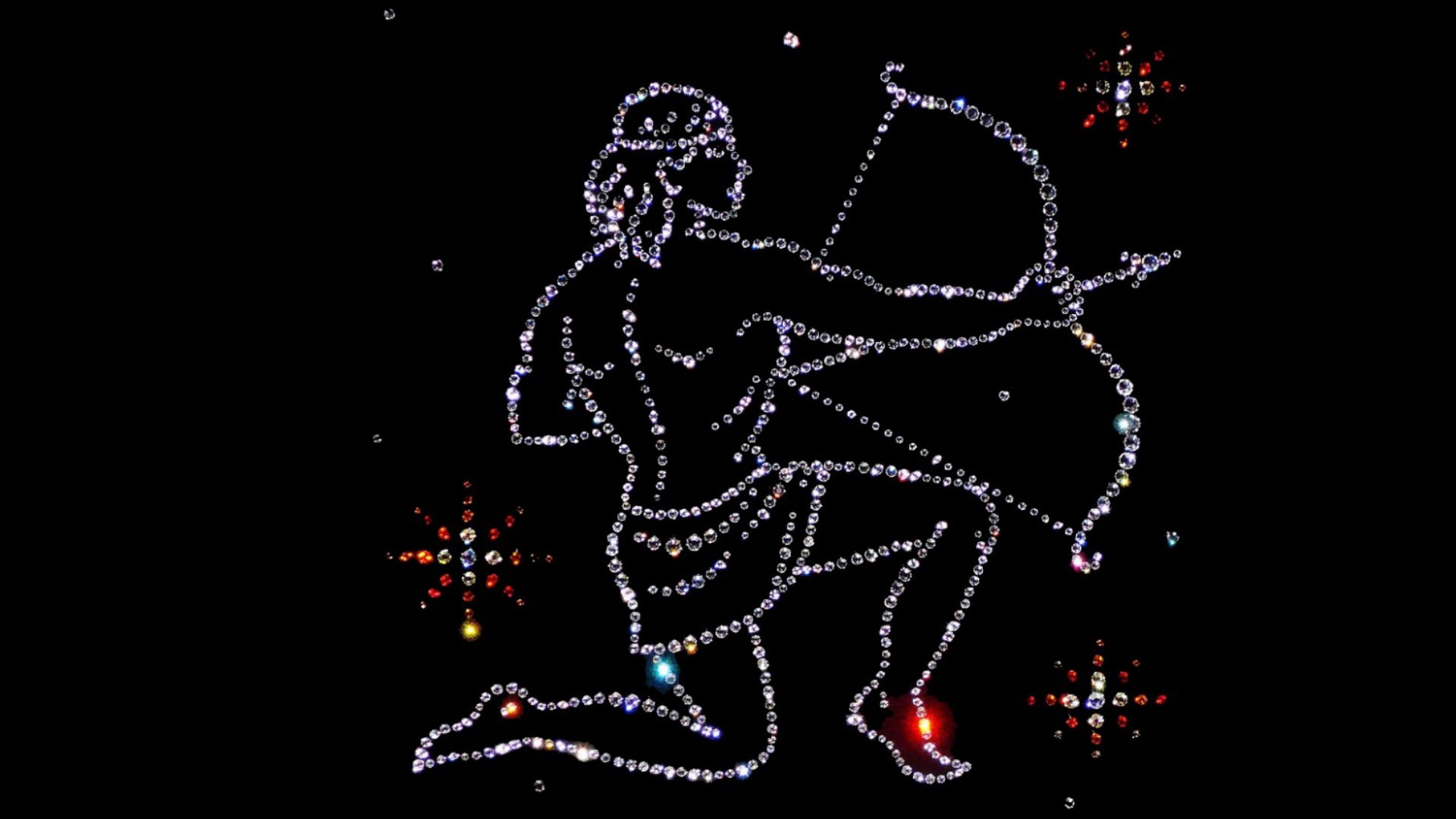 Brilliant zodiac sign Sagittarius on a black background. Desktop wallpapers 1920x1080