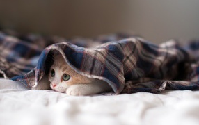 Kitten under the rug