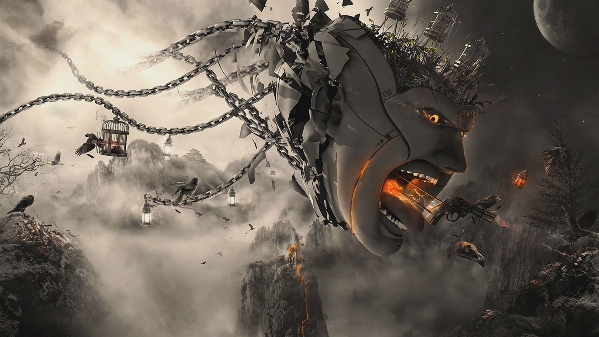 Летающая голова с цепями, 3-Д графика - 1920x1080
