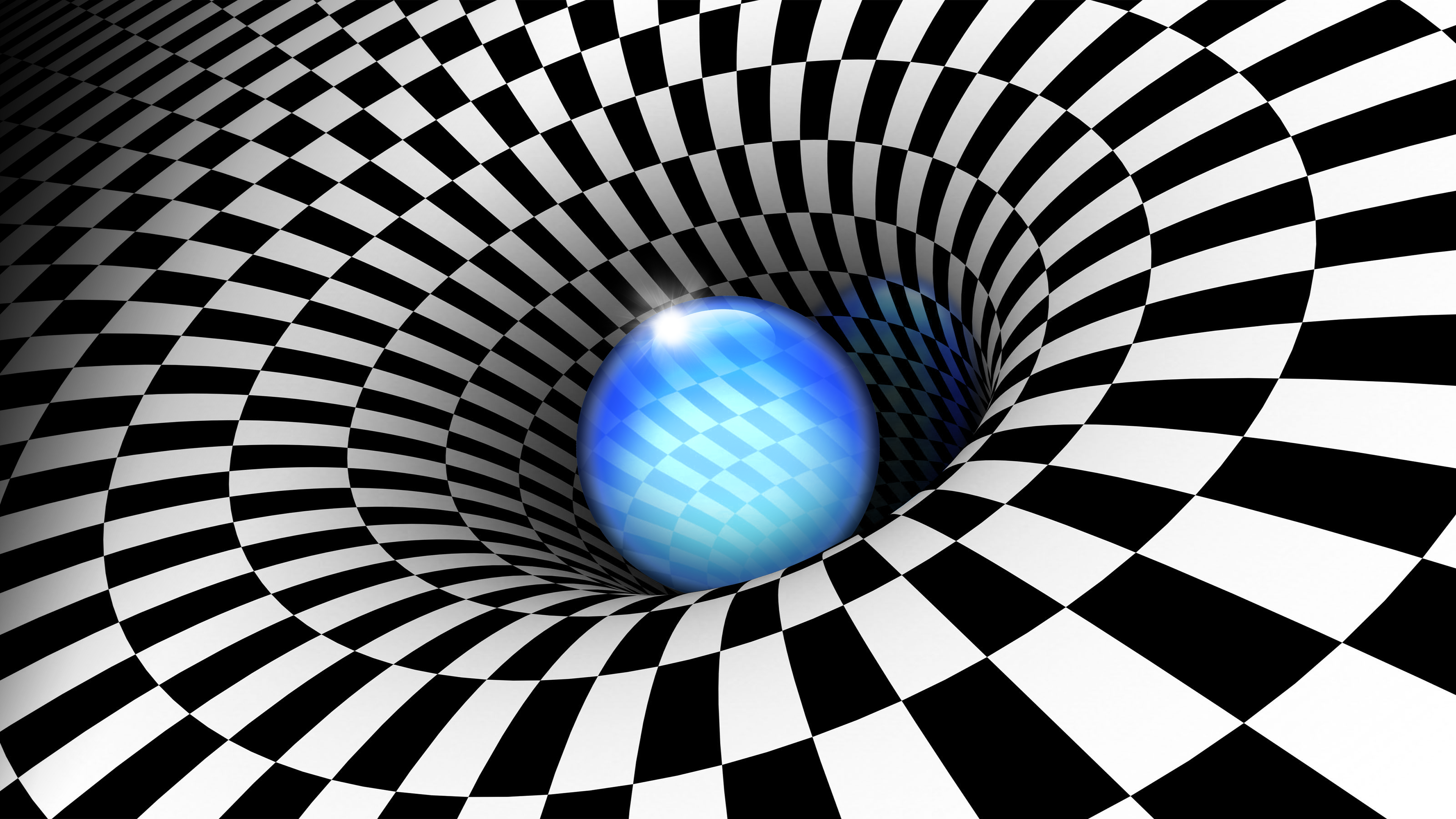 Черно - белая воронка с неоновым шаром - 3840x2160