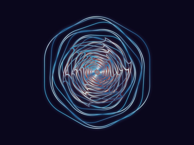 Обои: Неоновые фрактальные волны в рисунке на синем фоне