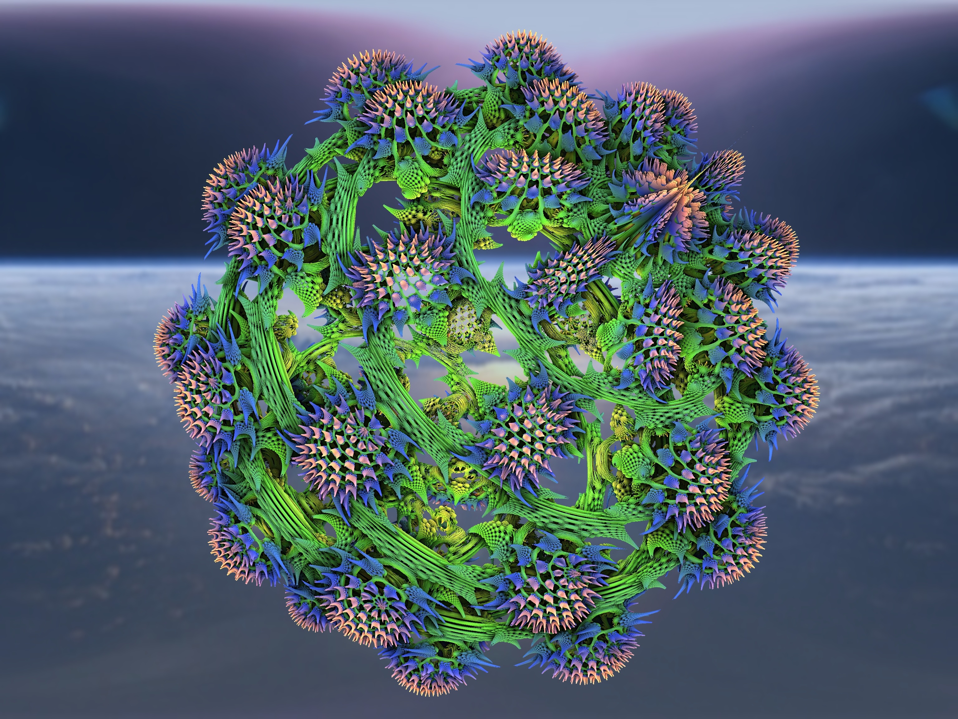 Большой колючий фрактальный цветок на сером фоне - 3072x2304