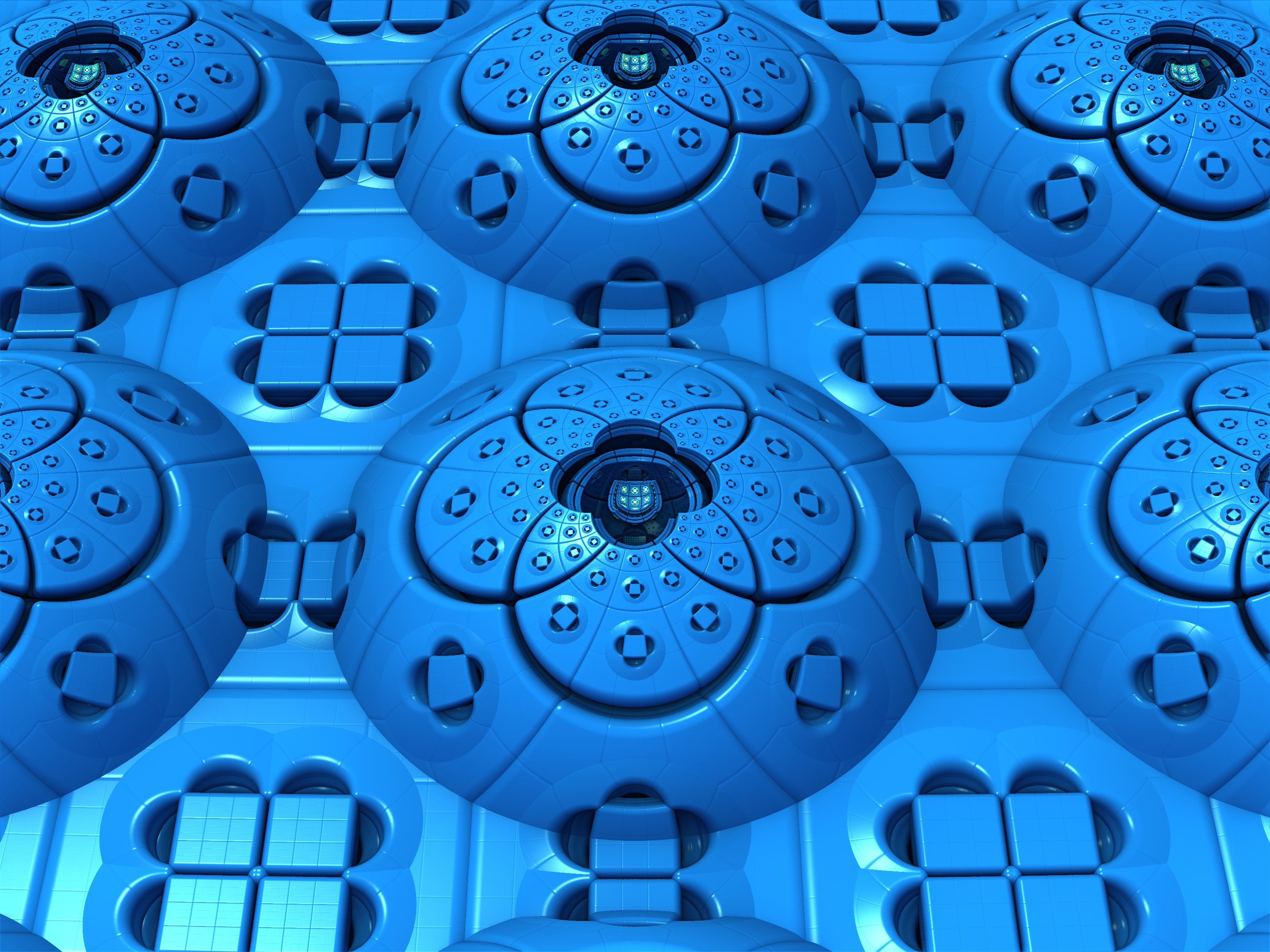 Голубые фрактальные цветочные узоры - 3072x2304