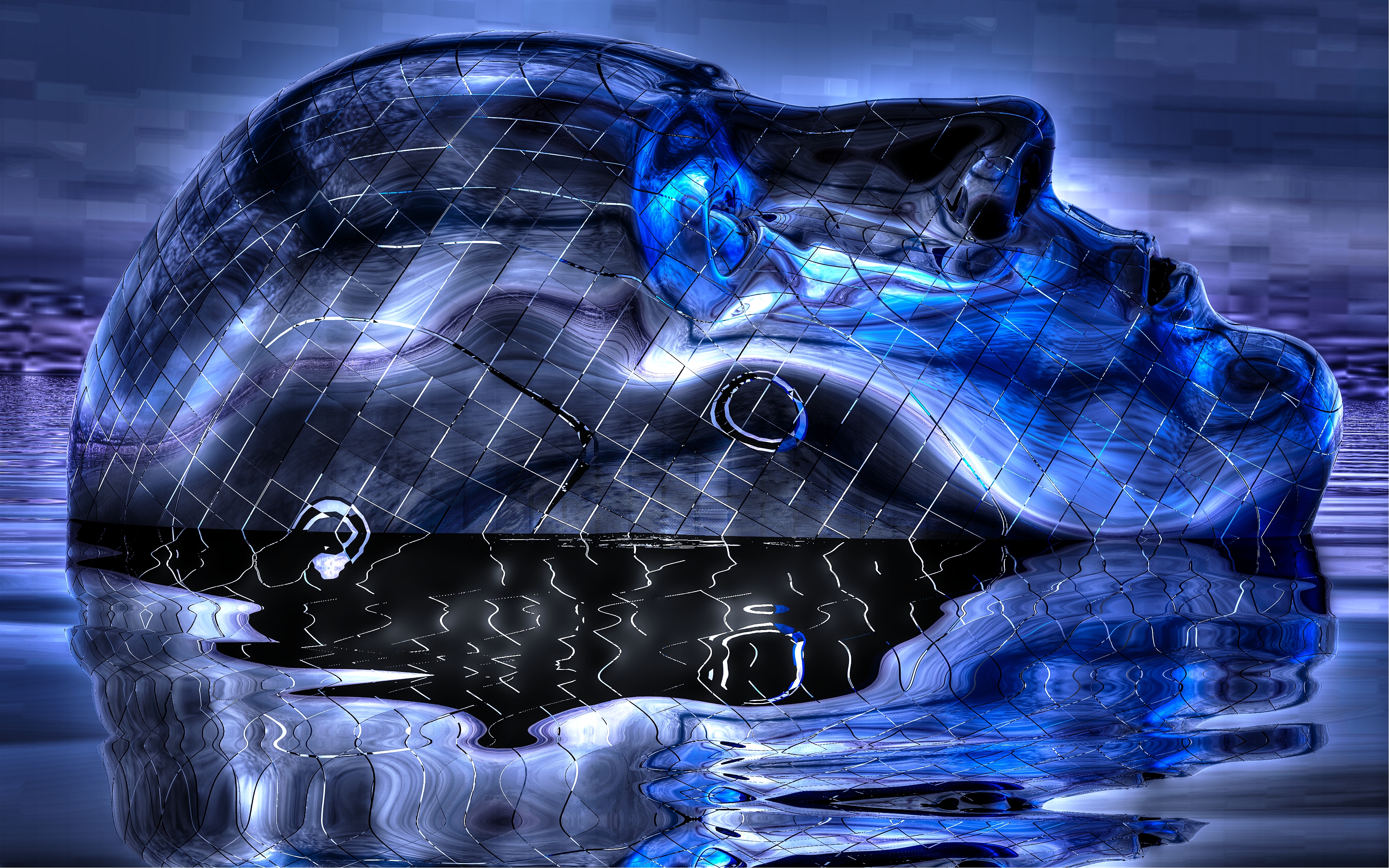 Синяя голова в воде 3д графика - 3840x2400