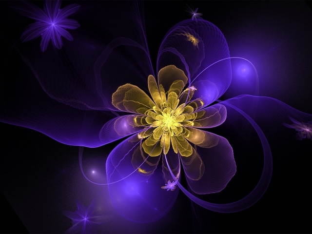 Обои: Фиолетовый фрактал с желтой серединой на черном фоне
