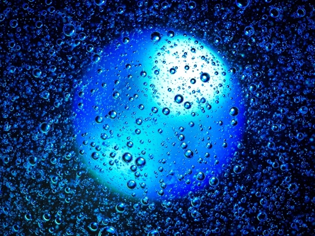 Круглый голубой шар в воде с пузырями - 5761x3846