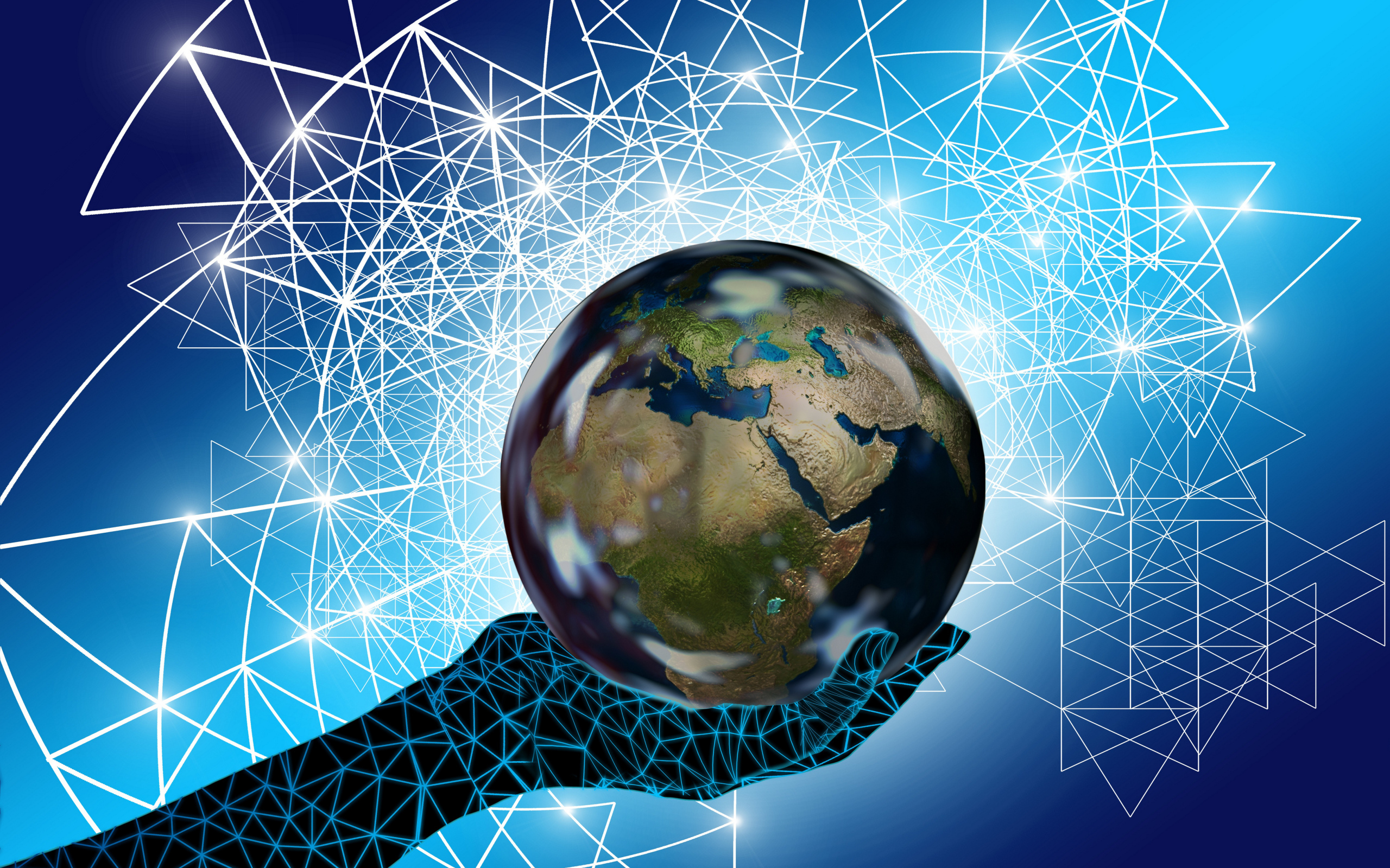 Планета земля на руке в компьютерной паутине - 4500x3000