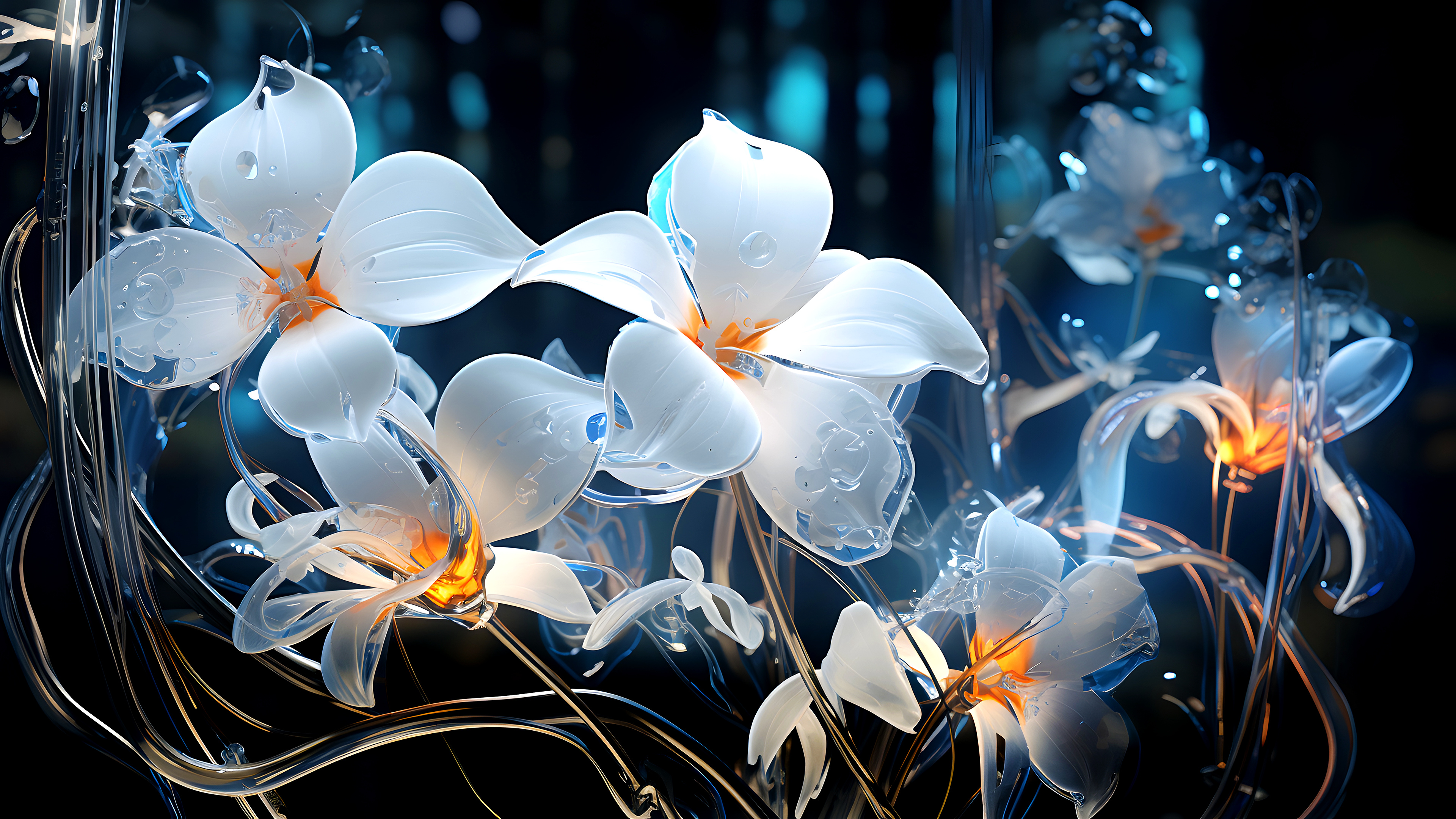 Стеклянные белые цветы на темном фоне - 3840x2160