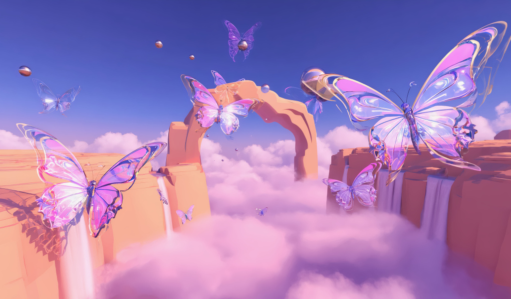 Абстрактные бабочки в облаках Обои для рабочего стола 1024x600