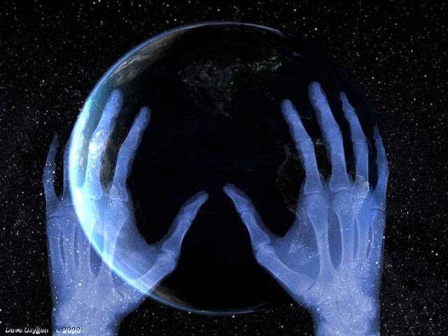 Планета земля на руке в компьютерной паутине