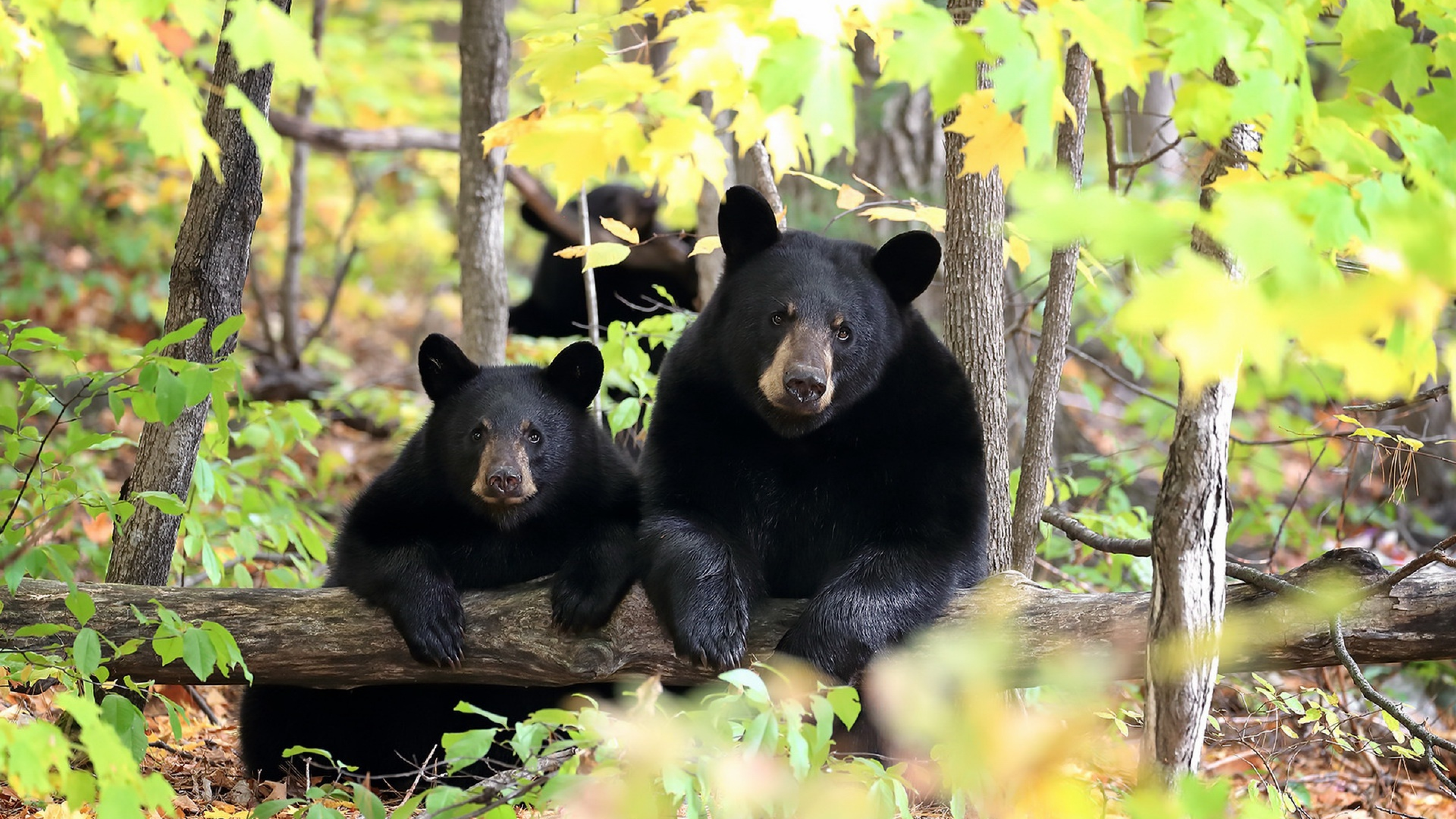 Два черных медведя в лесу - 3840x2160