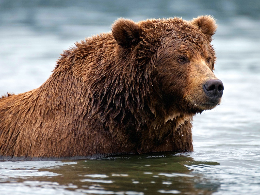 Большой мокрый бурый медведь в воде Обои для рабочего стола 1024x768