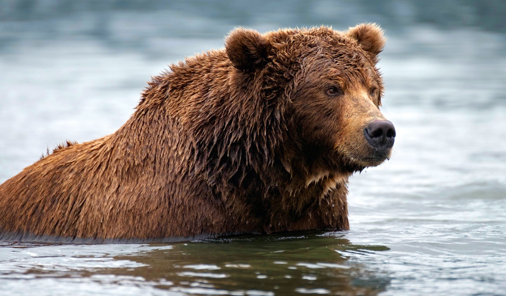Большой мокрый бурый медведь в воде Обои для рабочего стола 1024x600