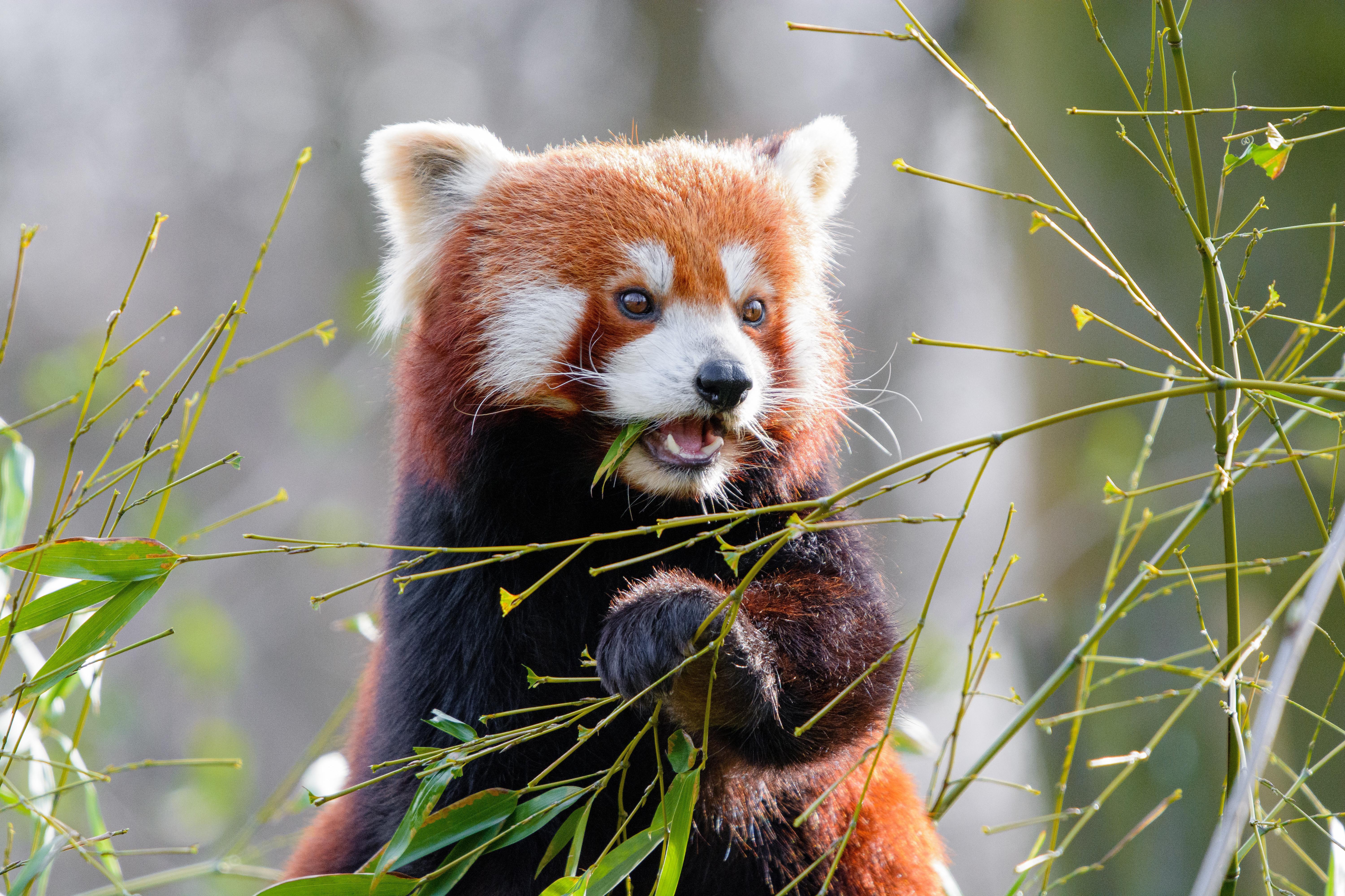 Милая малая панда грызет ветки бамбука - 6000x4000