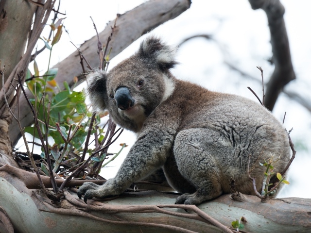 Большая коала сидит на ветке дерева Обои для рабочего стола 640x480