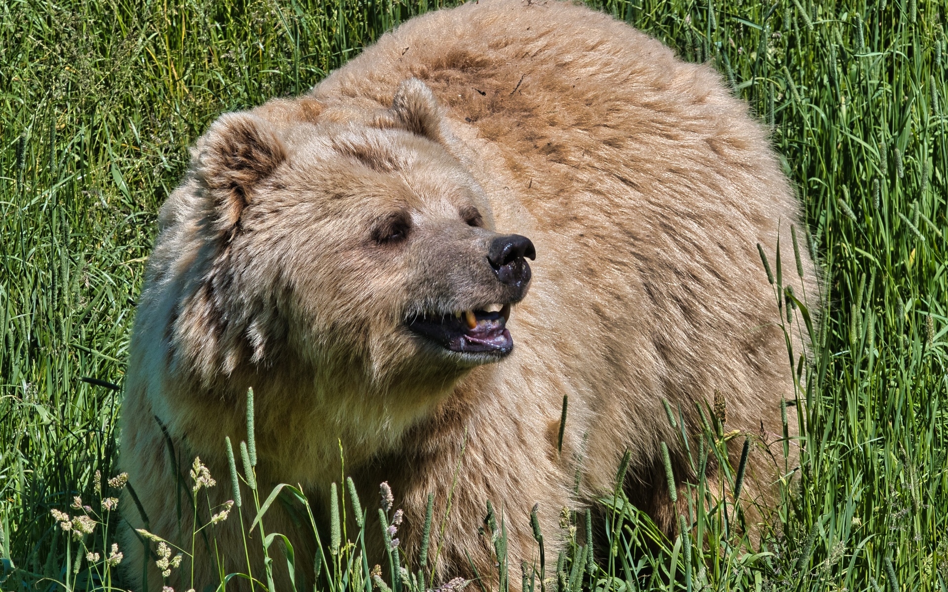 Большой бурый медведь в зеленой траве Обои для рабочего стола 1920x1200