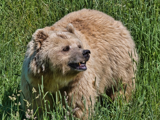 Большой бурый медведь в зеленой траве Обои для рабочего стола 640x480