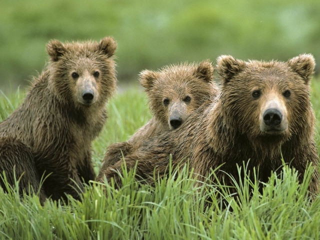 Обои: Семья бурых медведей