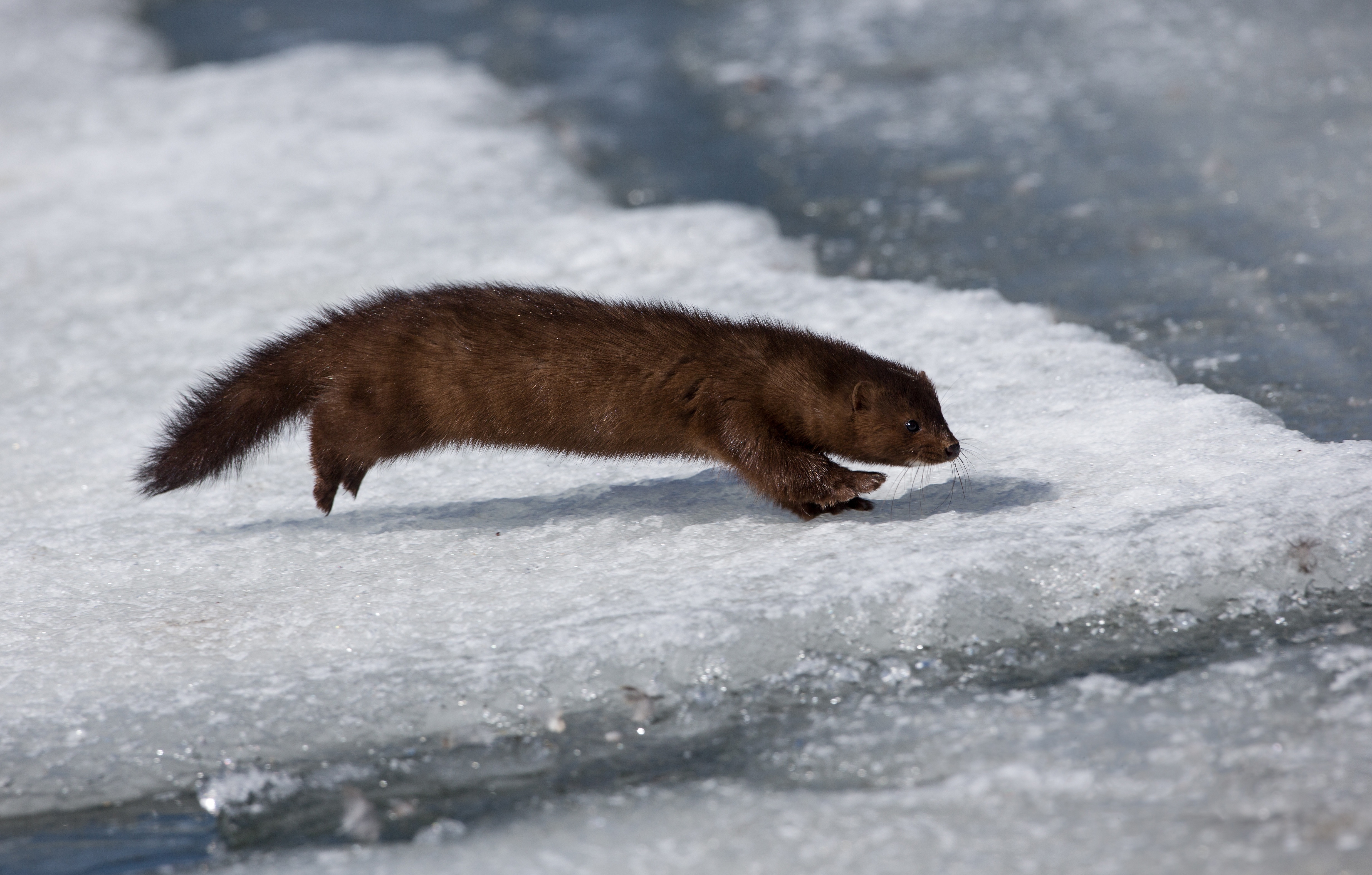 Хищная куница охотится на льду - 4933x3147