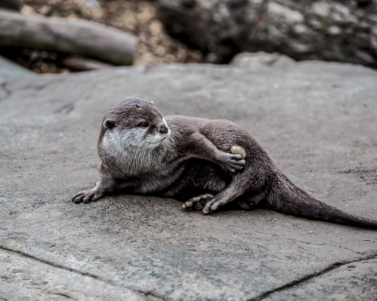 Милая выдра отдыхает на камне Обои для рабочего стола 1280x1024