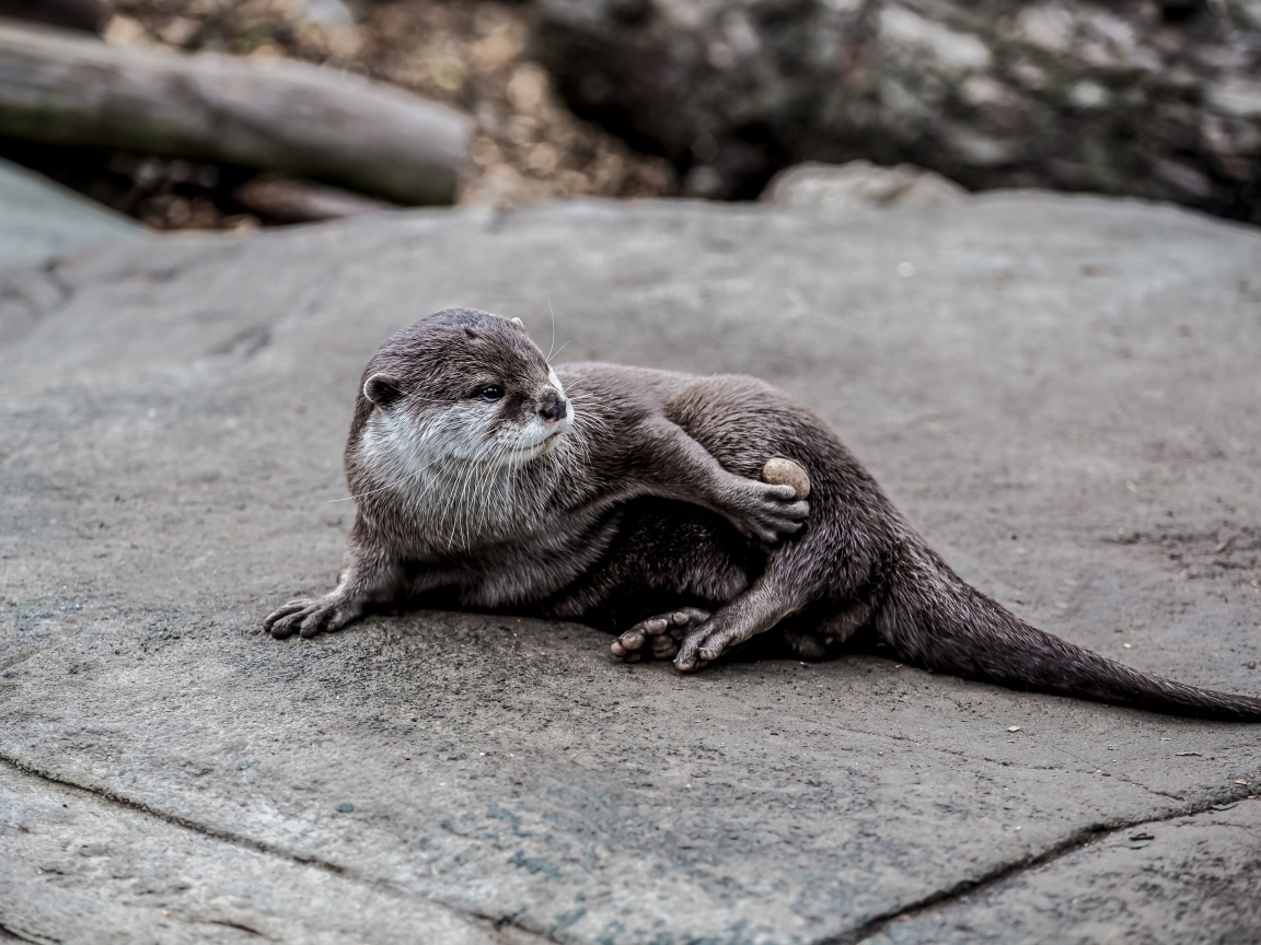 Милая выдра отдыхает на камне Обои для рабочего стола 1152x864