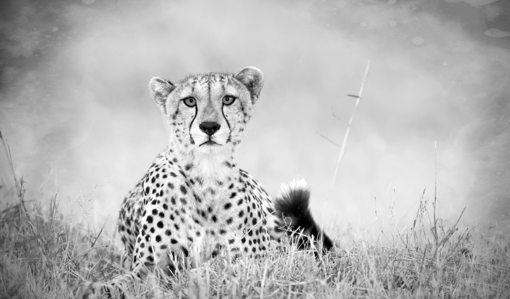 Гепард в черно-белом Обои для рабочего стола 1024x600