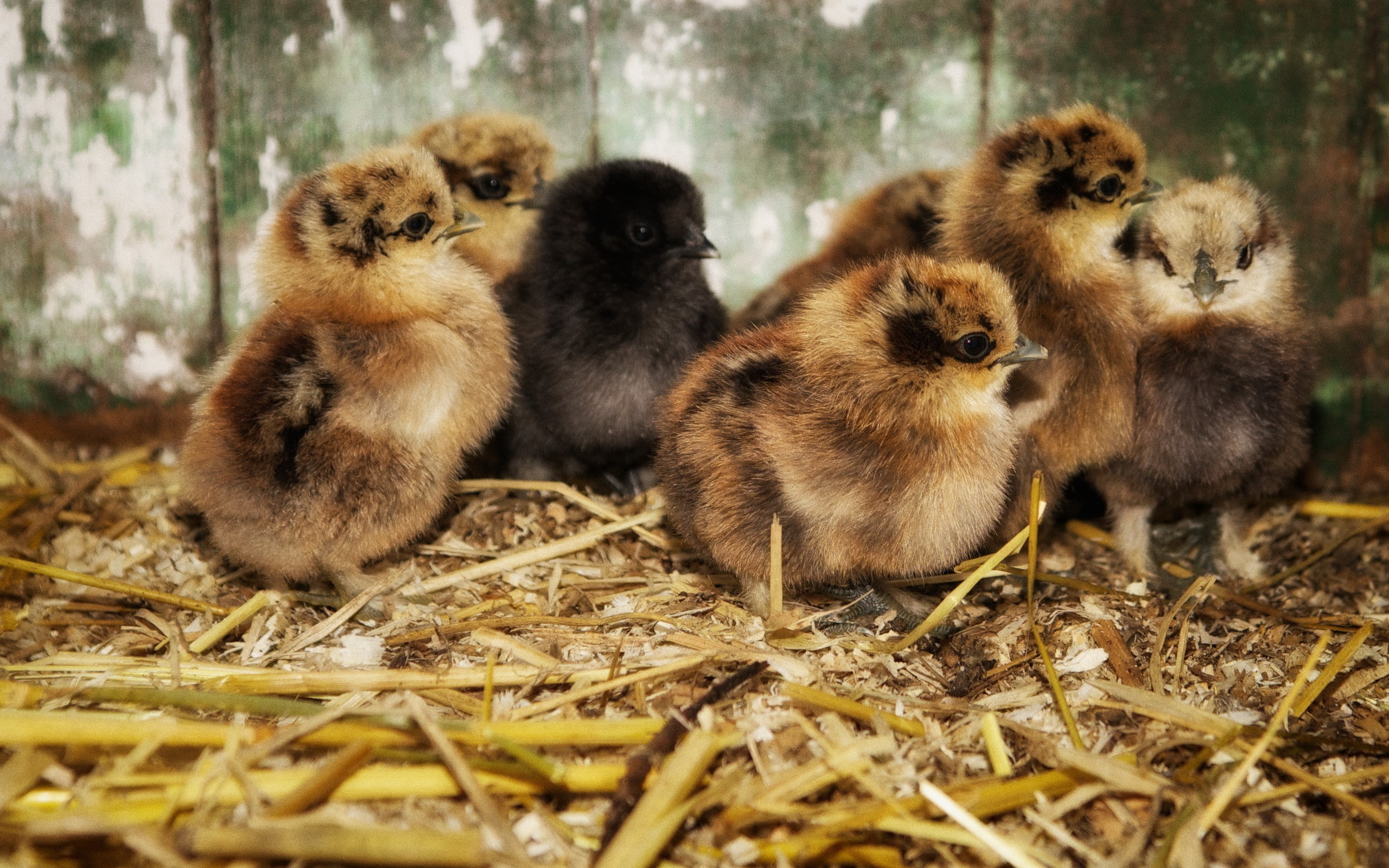 Птенцы на древесных опилках - 2560x1600