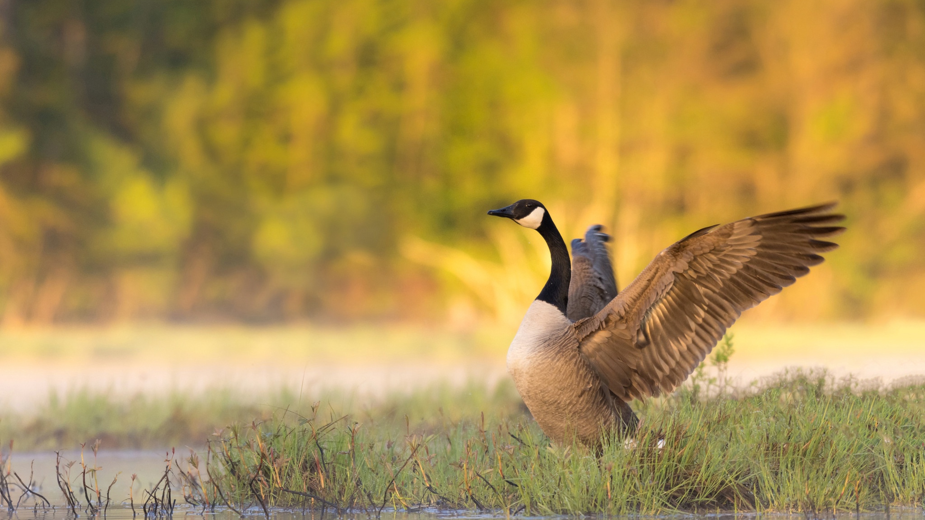 Гусь у водоема готовится взлететь - 3840x2160