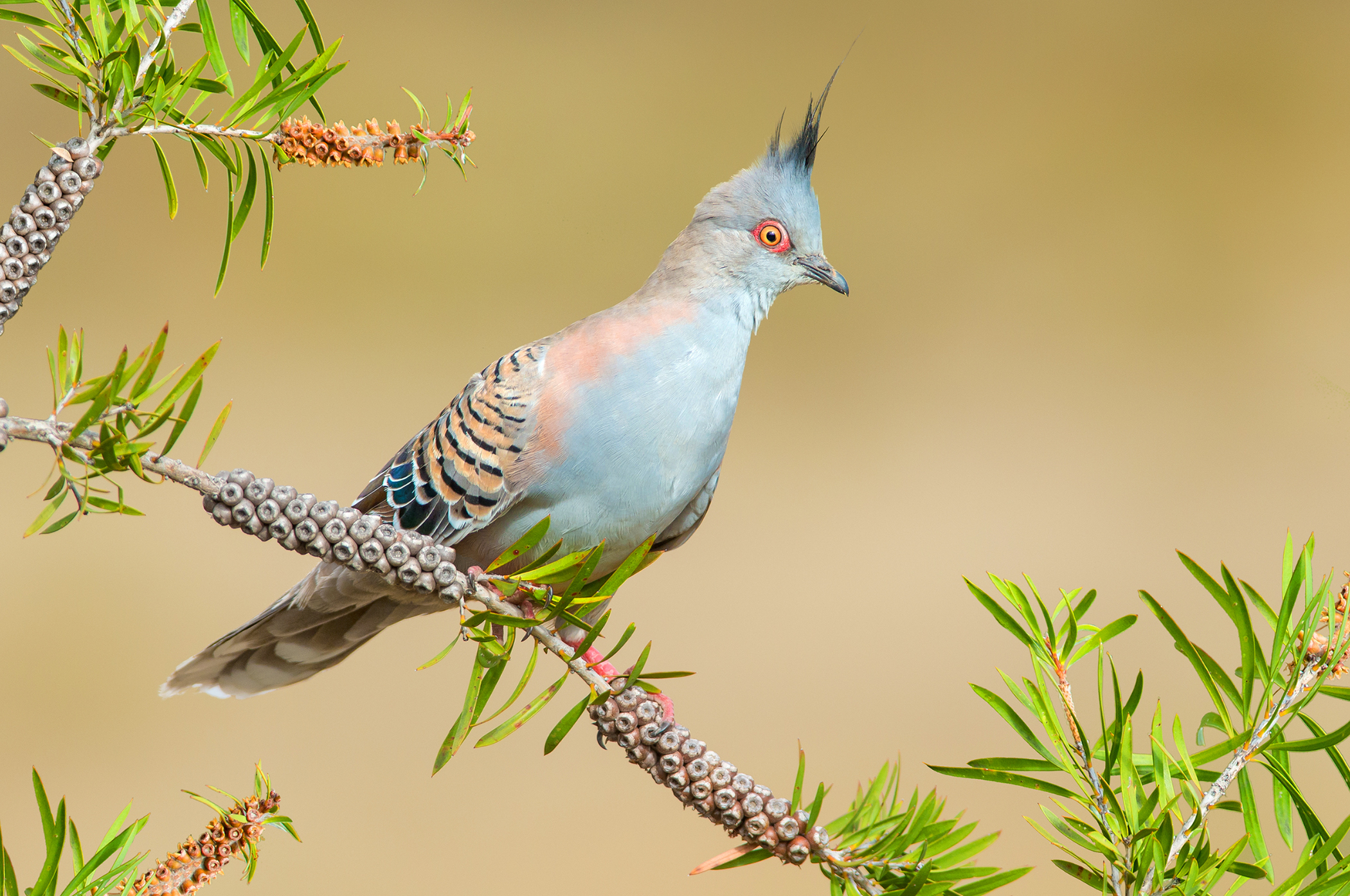 Обои: Хохлатый бронзовокрылый голубь на ветке дерева