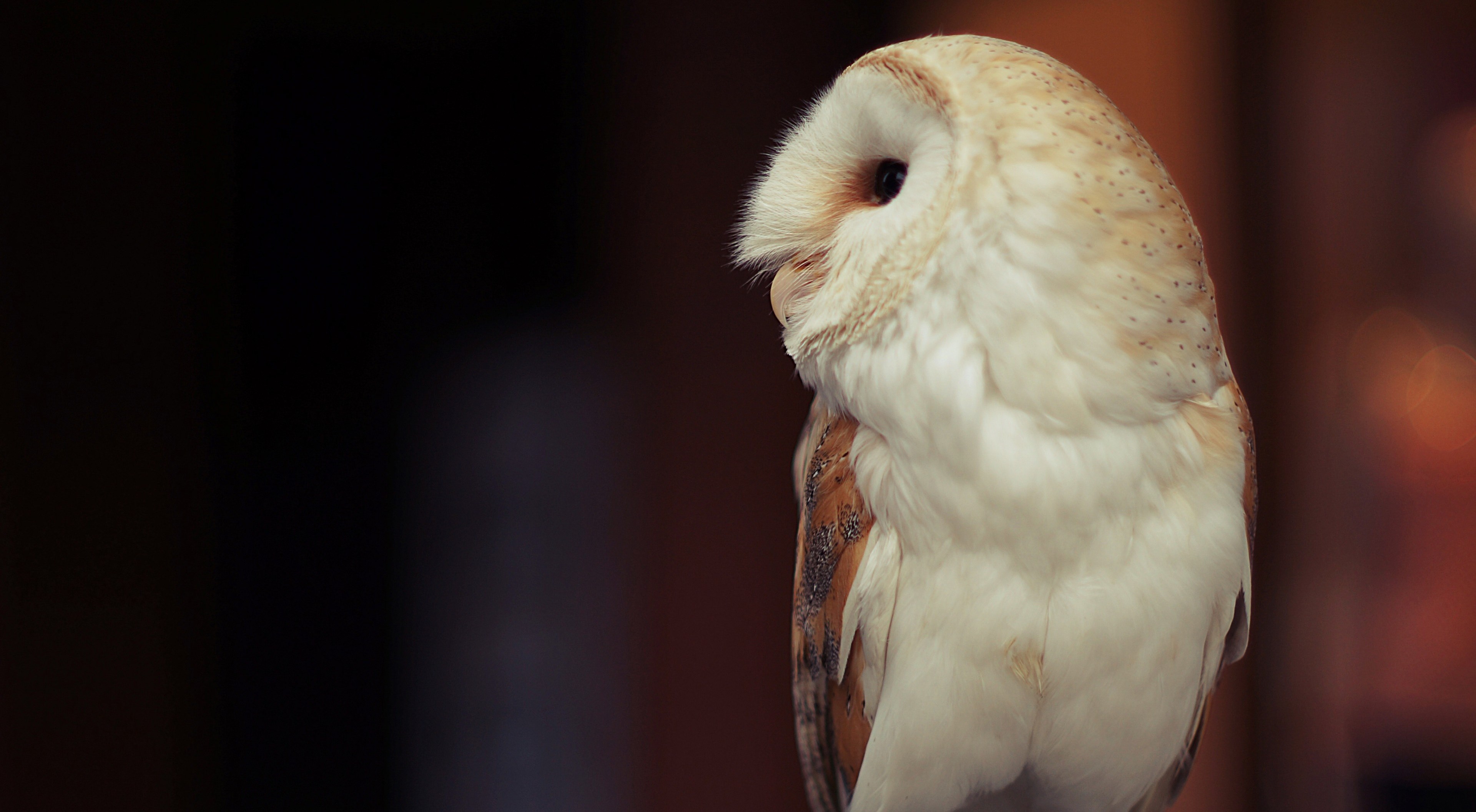 Белая большая сова вид сбоку - 3840x2113