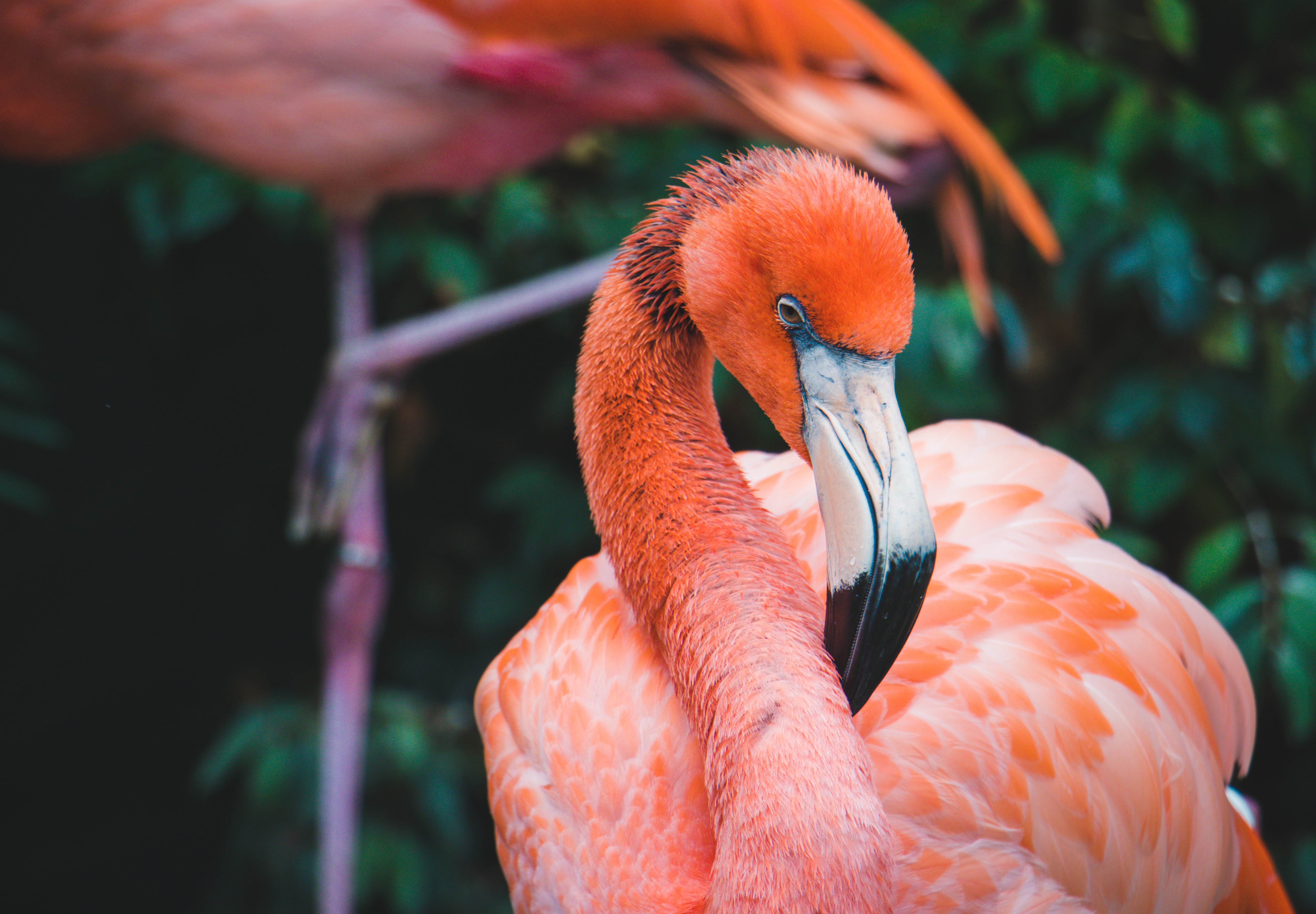 Розовый фламинго с длинным клювом крупным планом - 5762x4000