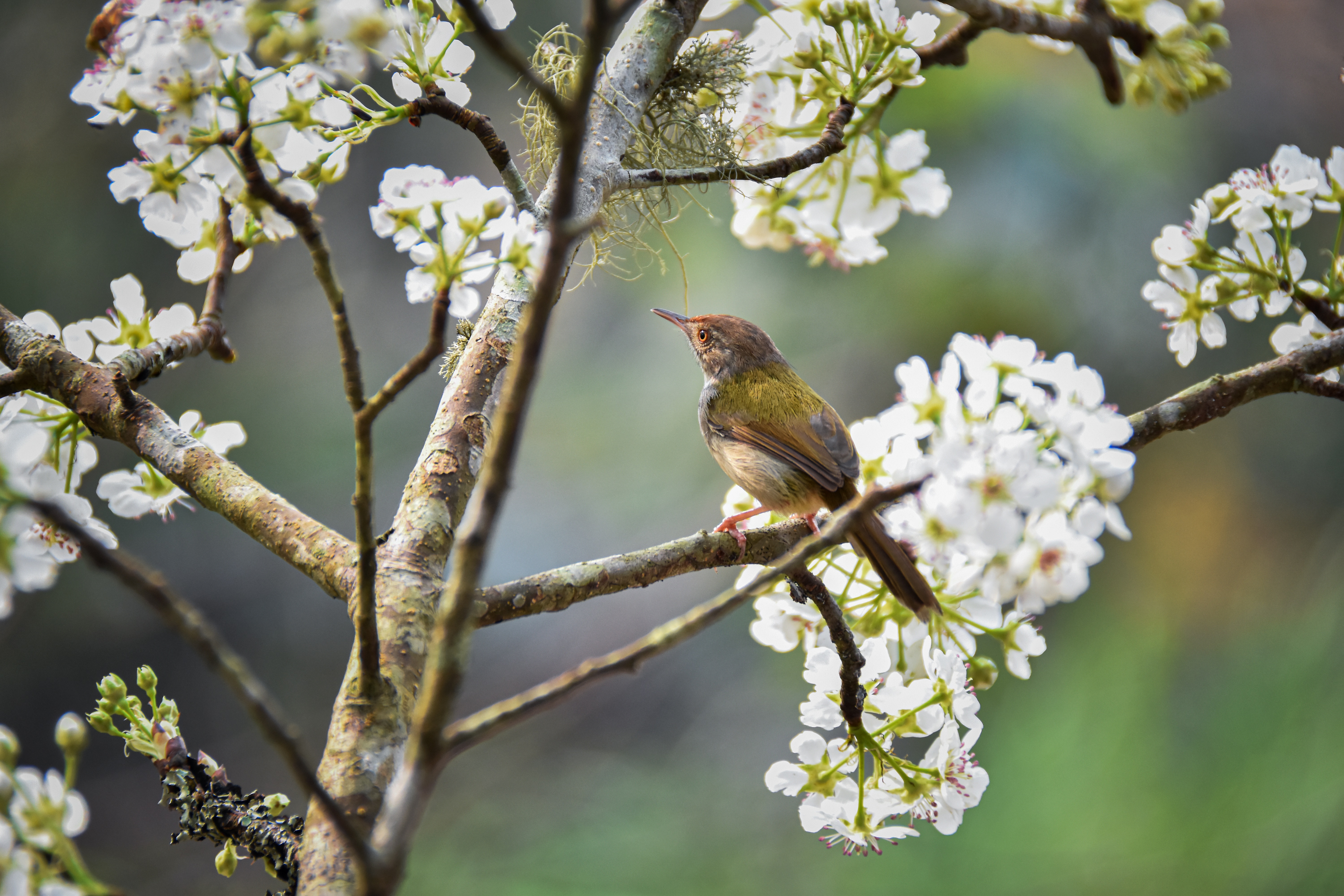 Маленький дрозд сидит на цветущей вишне - 6000x4000