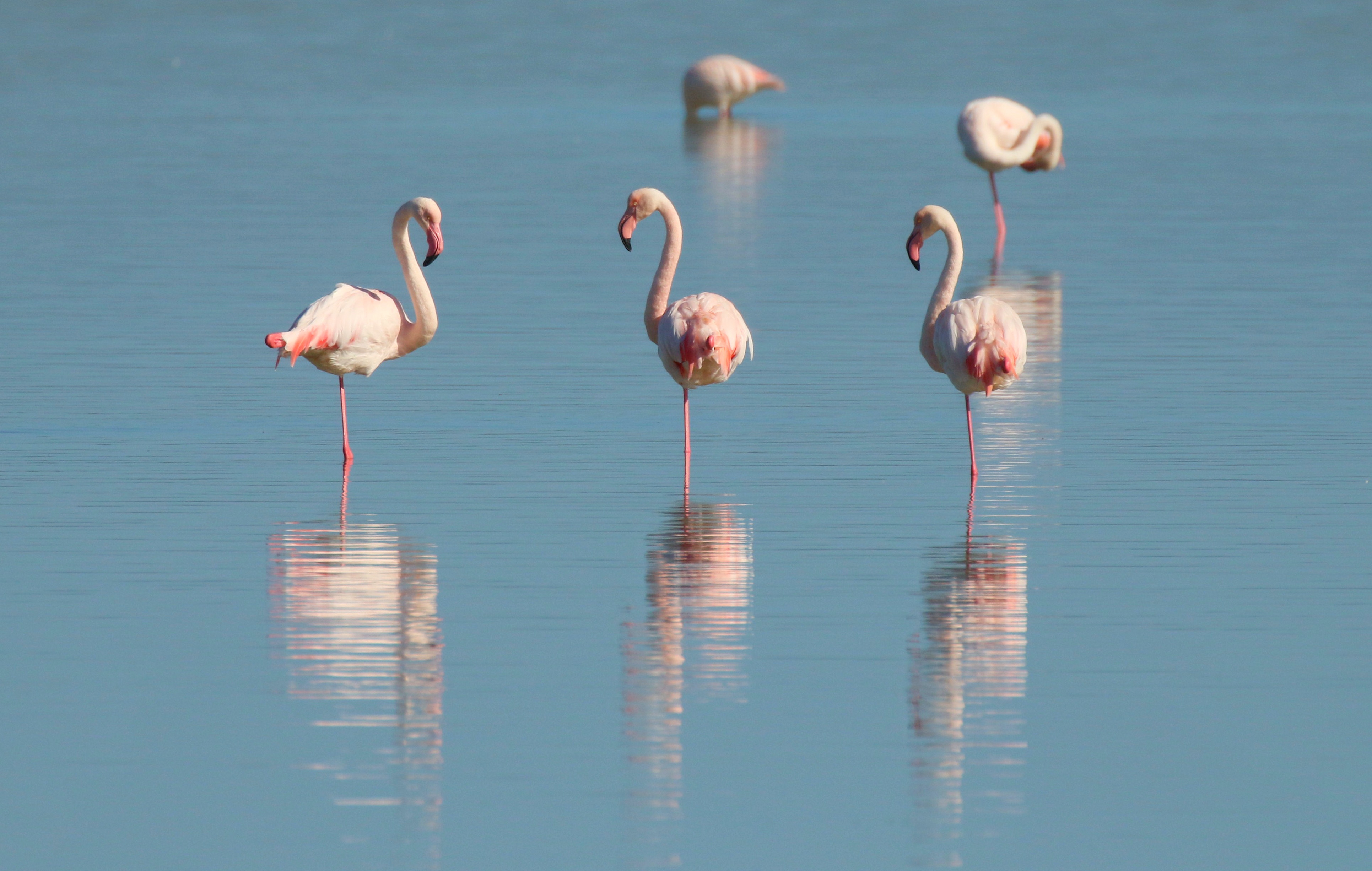 Розовые птицы фламинго стоят в воде - 3862x2452